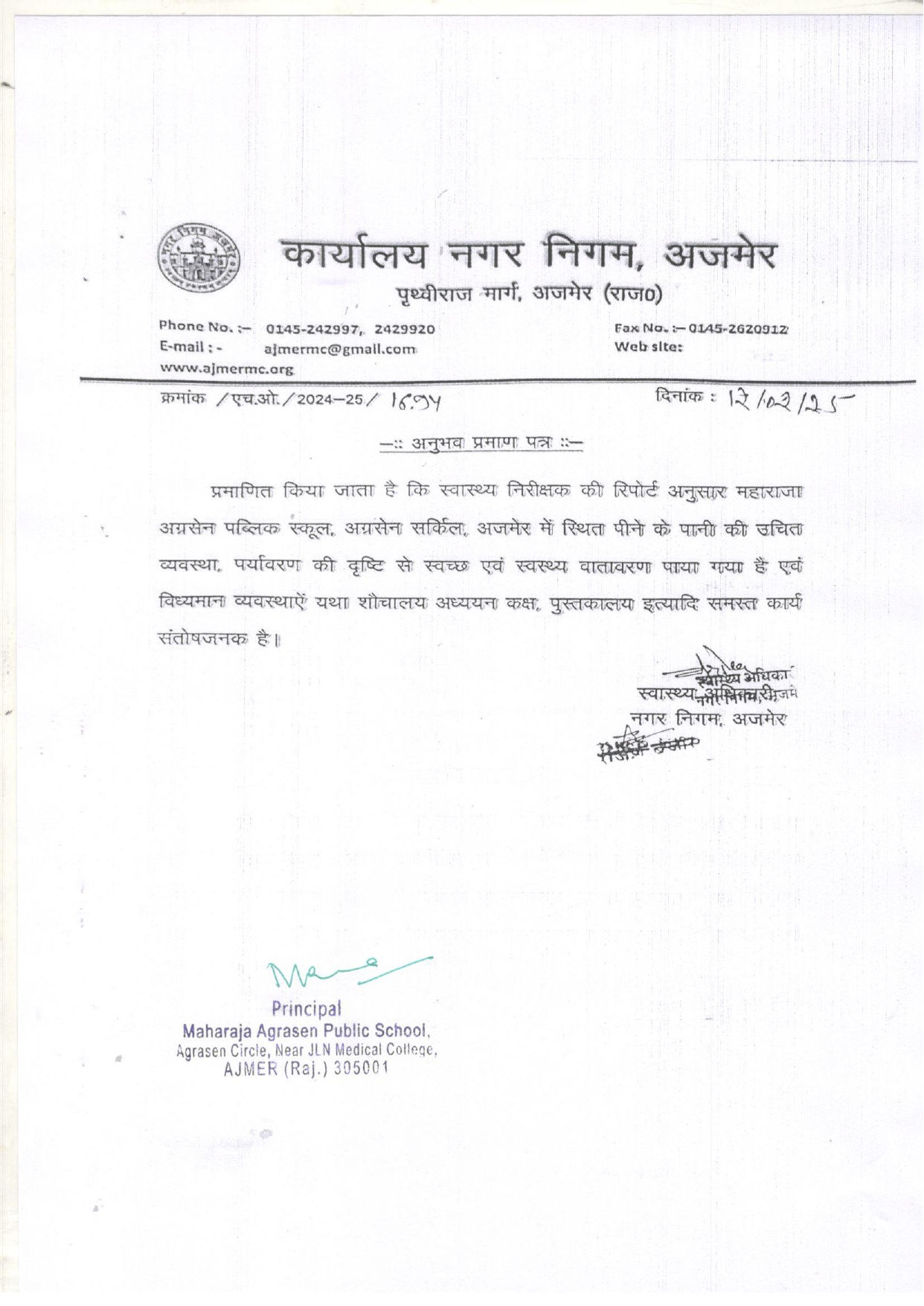 Water, Health and Sanitation Certificate